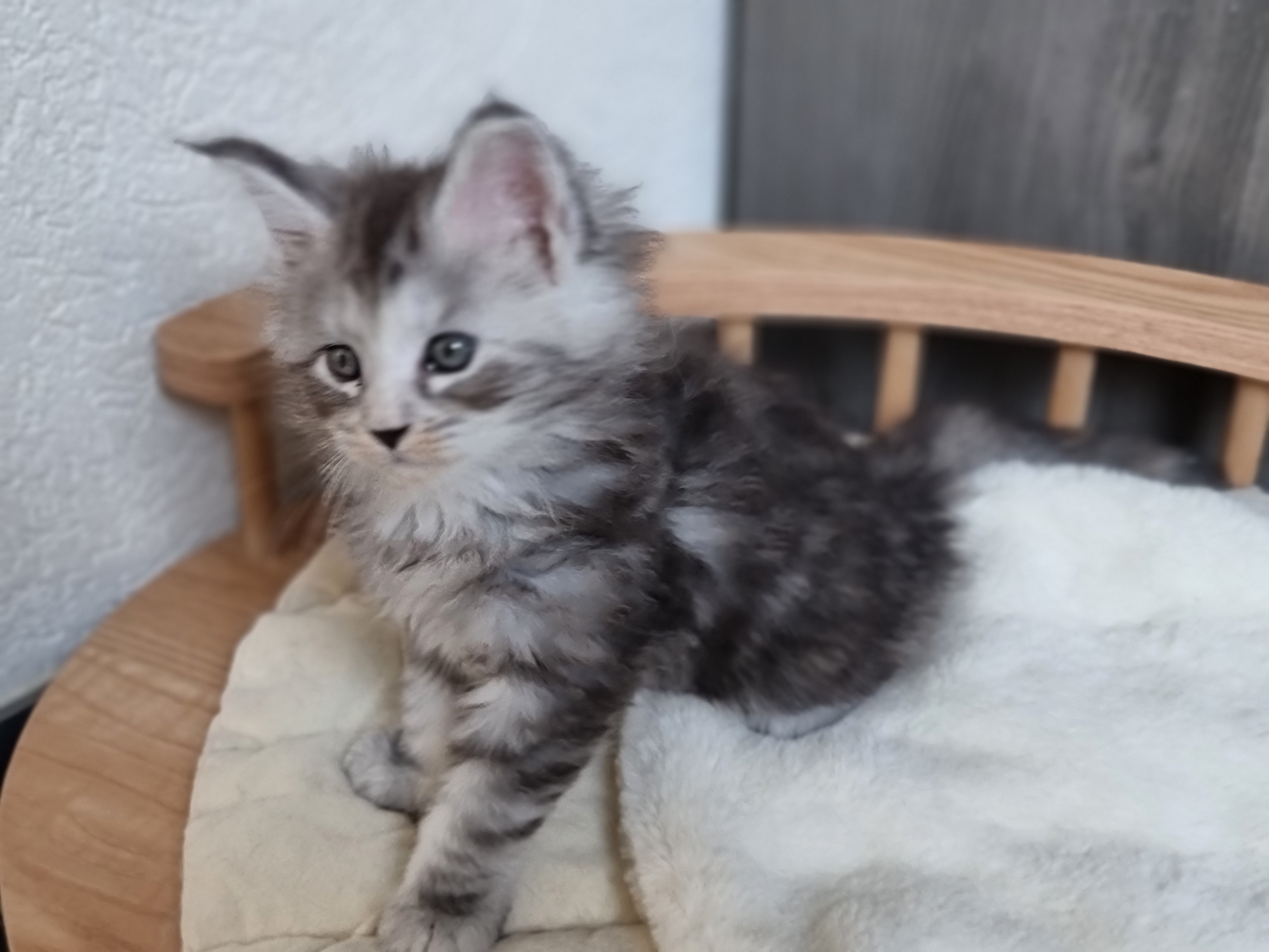 Disponible à la réservation, une adorable petite femelle Maine Coon black tortie silver, née le 17 février 🐾
